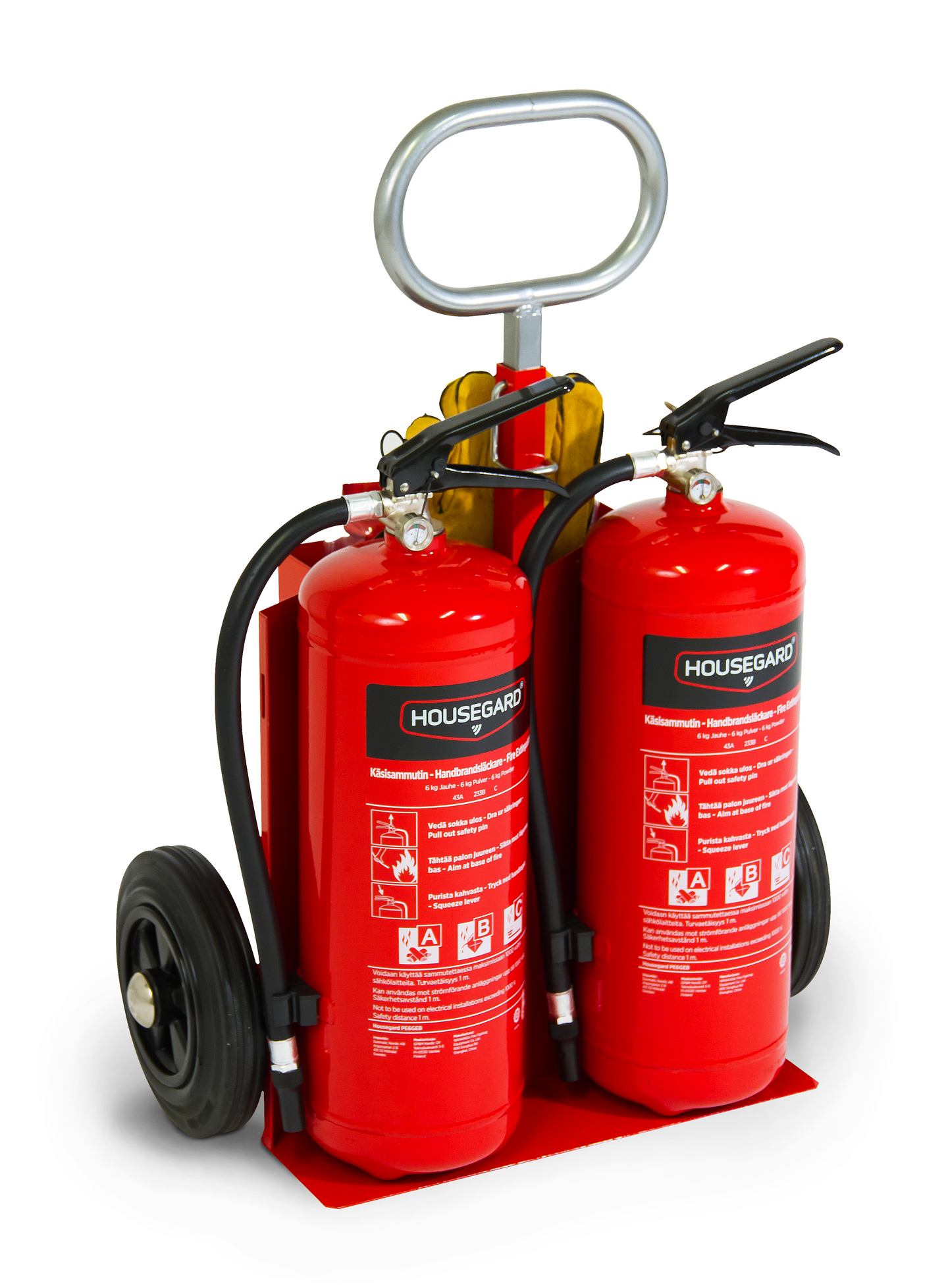 • 60 – 120 m²:n asunnot ja kotitalot: 6 kg jauhesammutin 55A, sarjaankytkettävä palovaroitin jokaista 60 neliömetriä kohden, sammutuspeite