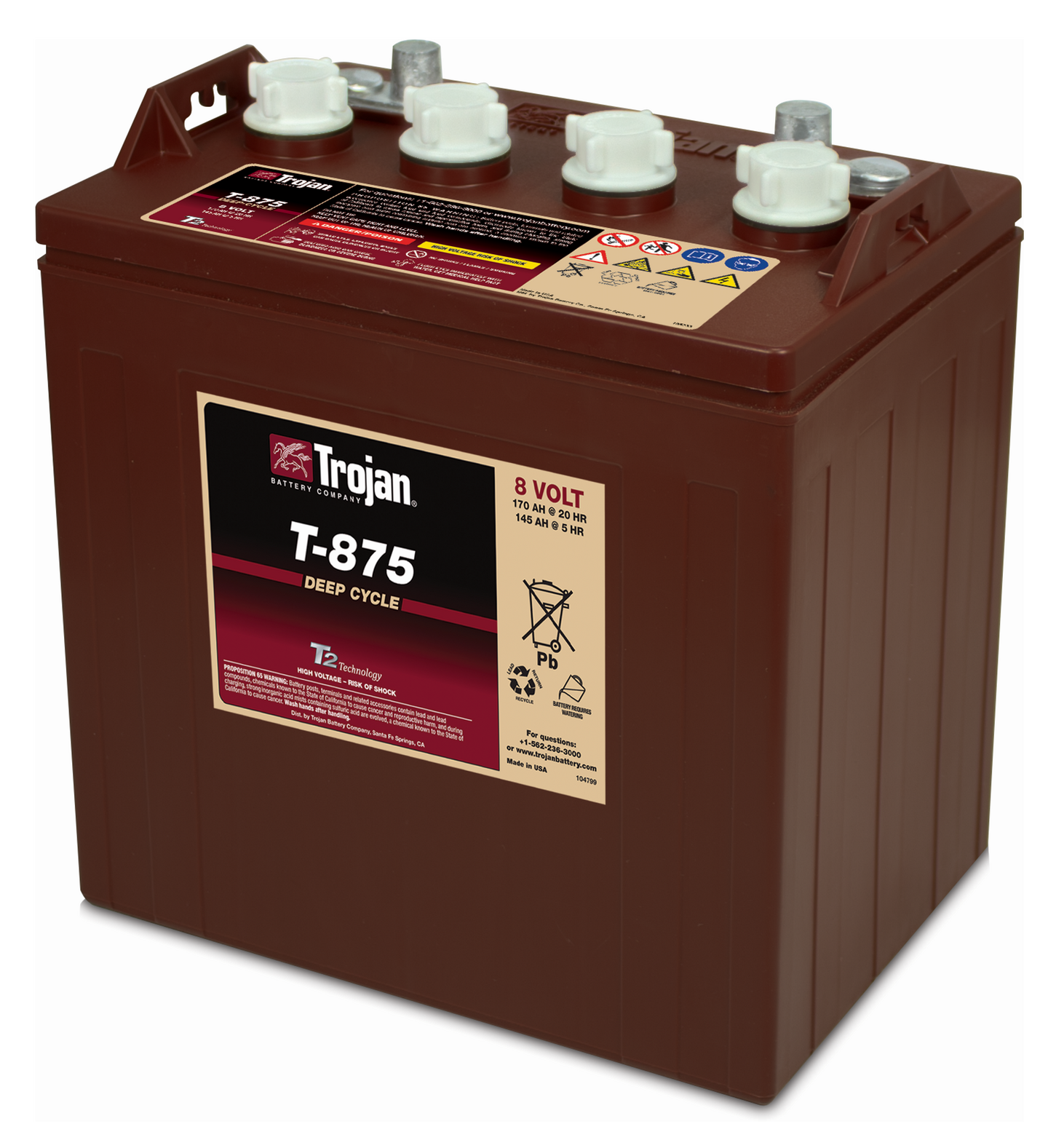 Akku lyijy avoin Trojan T-875-LPT 8V 170Ah