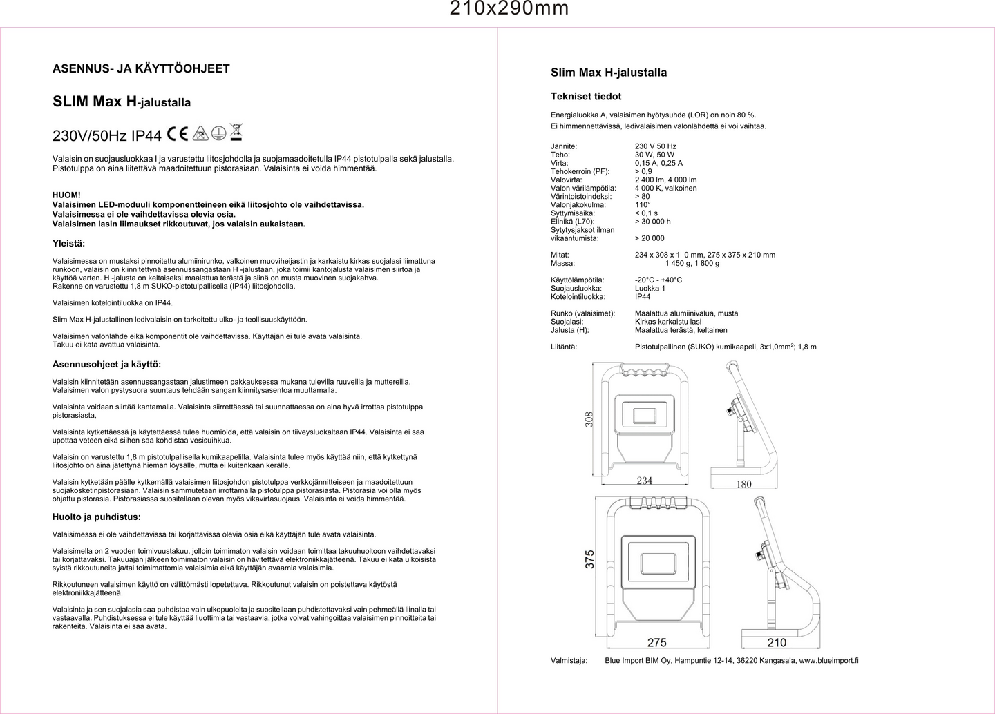 Led-työvalaisin tukevalla H-jalustalla, jonka ansiosta valaisinta on helppo siirrellä ja kohdentaa. Pakkaus sisältää 1,8 m kumikaapelin sekä pistotulpan.