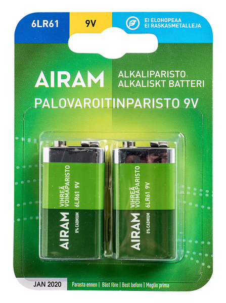 Paristo Airam Vihreä Voima 6LR61 9V alkali 2kpl