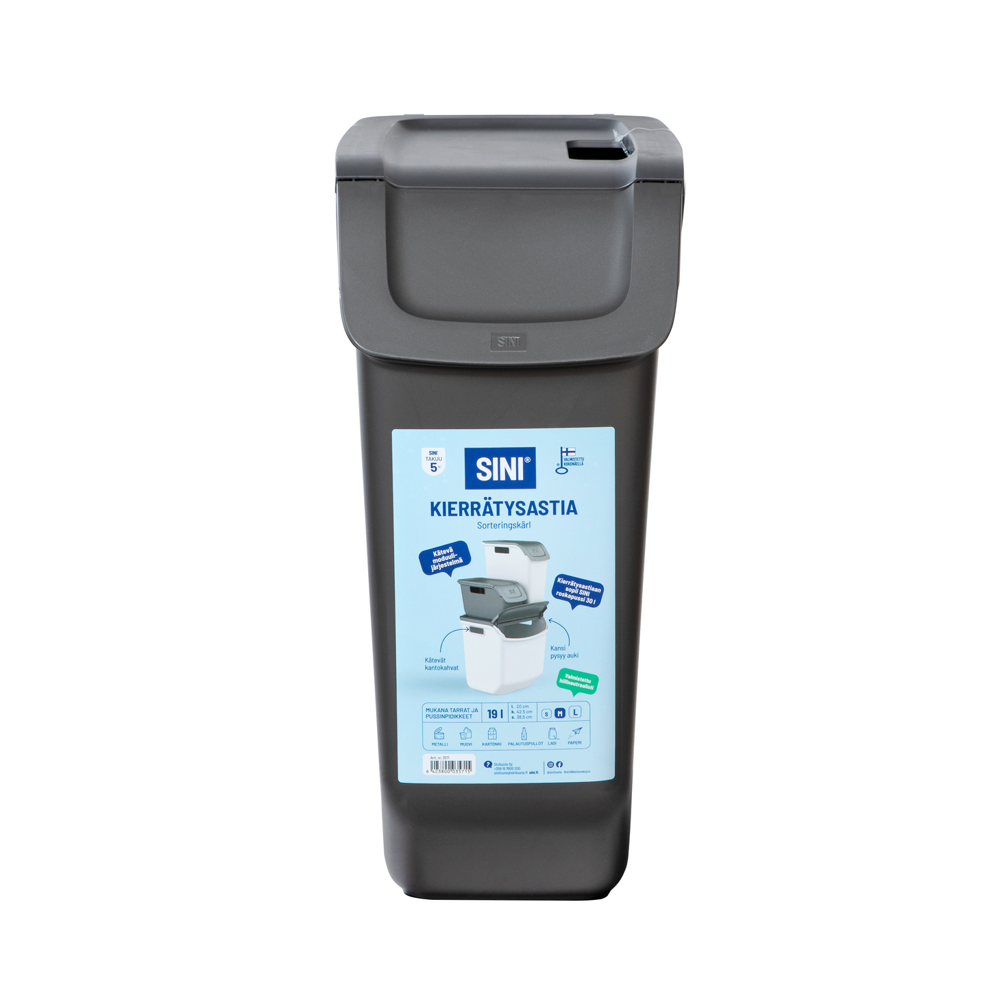 Kierrätysastia SINI M 18l grafiitti