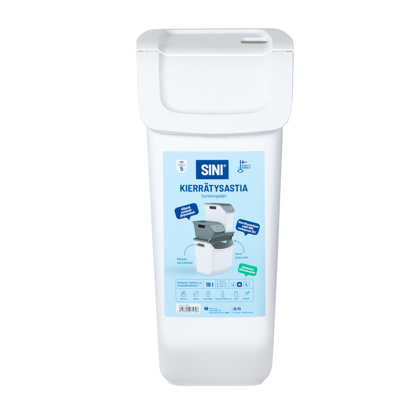 Kierrätysastia SINI S 9l valkoinen