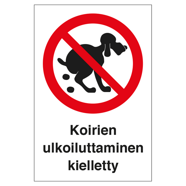 Koirien ulkoiluttaminen kielletty -kyltti, 200x300mm muoviproduct.imageAltTextKoirien ulkoiluttaminen kielletty -kyltti, 200x300mm muovi14,25€/kpl 14,25 € / kplLue lisääAddToCartVain myymälöistäVain myymälöistäTilaustuoteKatso saatavuus myymälöissäTilaustuote