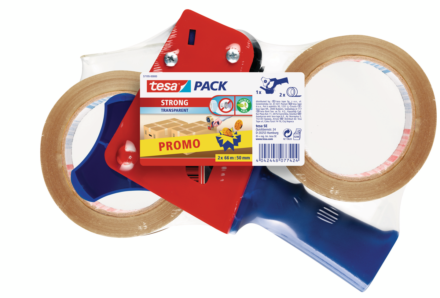 Pakkausteippikone Tesa Strong läpinäkyvä 2rll/pkt 66 m