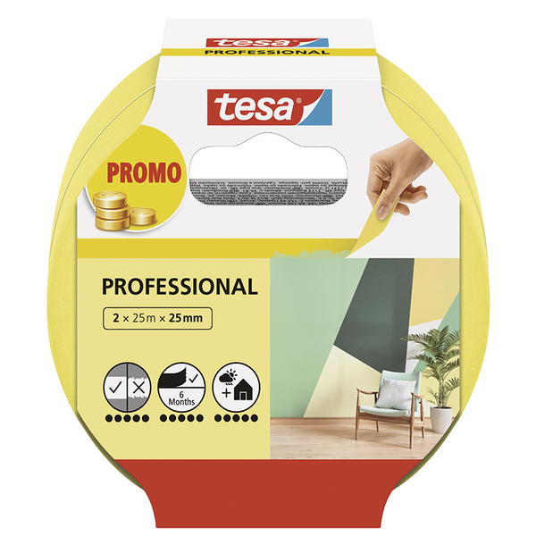 Maalarinteippi Tesa Professional 25mmx25m keltainen
